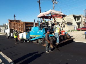العمل تضمن تسوية وحدل الشارع ومعالجة المنخفضات وفرش مادة الاسفلت بكمية (٣٧٤)طن والعمل مستمر بوتيرة عالية لانجاز الاعمال بأسرع وقت.