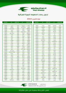 جدول رحلات الخطوط الجوية العراقية ليوم غد الخميس الموافق 4/4/2019.