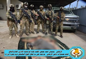 اكد الناطق باسم الداخلية ان “ابطال الفوج التكيكي الخاص التابع الى قيادة شرطة محافظة الانبار بالاشتراك مع قوة من عمليات الانبار يتمكنون وخلال واجب مشترك من قتل الإرهابي الملقب ب( هباد ابو عائشة ) وهو الذي كان يشغل ما يسمى الإداري العام والناقل العام لمعسكرات داعش الإرهابي، وجاءت هذه العملية بعد اشتباك حصل مع هذا المجرم في صحراء قرب بحيرة الرزازه”.