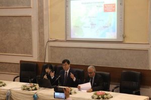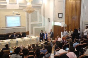 وحصلت “هنا العراق” الاخبارية على صور حصرية للسفير الكوري وهو يلقي محاضرته في بغداد.