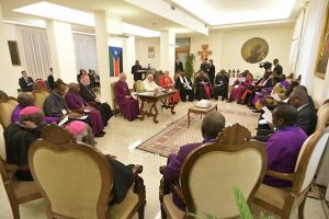 كما دعا البابا فرنسيس زعماء جنوب السودان للحفاظ على السلام وحثهم على عدم العودة إلى الحرب الأهلية .