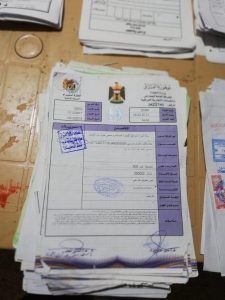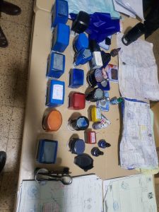 تم ذلك بعد ورود معلومات مؤكدة بوجود اختام مزوره داخل أحد وكلام الأخراج الكمركي، حيث قامت قوة حماية المنفذ وشعبة البحث والتحري بتفتيش احد الكرفانات وتم ضبط المواد التالية ” 22 ختم تعود لدوائر تعمل داخل المنفذ وتستخدم لانجاز المعاملات مع ختم حراري ووصولات ضريبية فارغة ومملوءة مع وصولات إيرادات الدولة فارغة مع أقراص ليزرية عدد 85″.