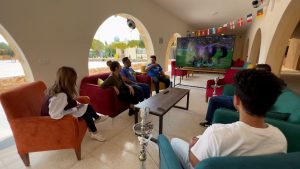 وأشار سفيان ان القرية توفر كل المتطلبات من خلال متعة المشاهدة حيث تتوفر شاشات عملاقة لنقل الحدث في اجواء عائلية وتوفر كافة خدمات الطعام والشراب الى جانب الخدمة المجانية لاصطفاف السيارات .
