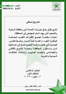 تحالف العزم يحذر من فتنة كركوك ويدعو لضبط النفس