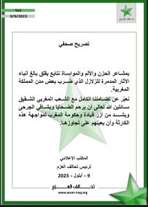 تحالف العزم يتضامن مع المغرب في مواجهة الزلزال “المدمر”‎