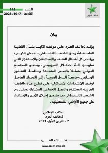 تحالف العزم يعلن موقفه من عملية “طوفان الأقصى”