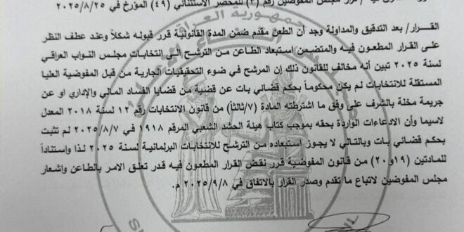 الهيئة القضائية للانتخابات تعيد سجاد سالم للسباق الانتخابية.