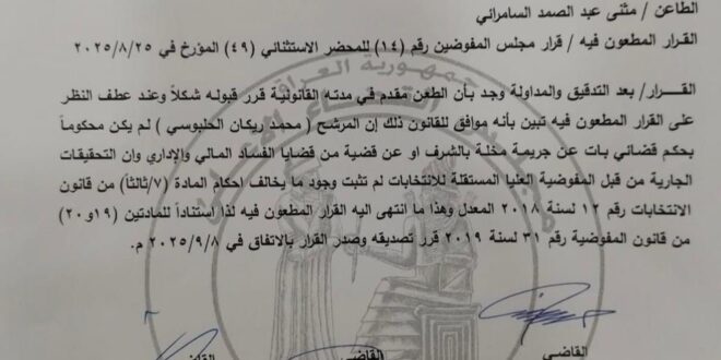 الهيئة التمييزية القضائية للانتخابات تصادق على صحة ترشيح رئيس حزب تقدم محمد الحلبوسي للانتخابات النيابية