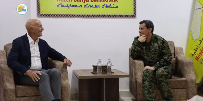 استقبل القائد العام لقوات سوريا الديمقراطية الجنرال مظلوم عبدي صباح اليوم السفير الأمريكي في تركيا والمبعوث الخاص إلى سوريا توم باراك، يرافقه الأدميرال براد كوبر على رأس وفد من التحالف الدولي.