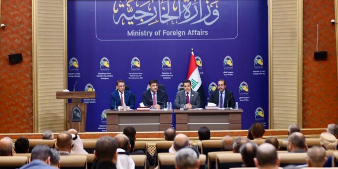 ويأتي الاجتماع الذي احتضنته وزارة الخارجية العراقية ، لمناقشة مضامين ورؤى إستراتيجية الأمن الوطني العراقي والمعنونة “العراق أولاً”.