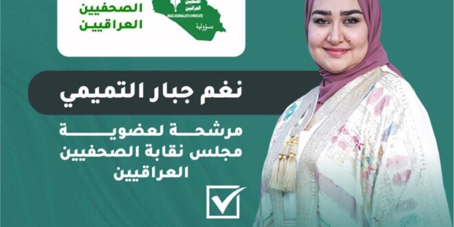 أعلنت قناة النهرين الفضائية دعمها للصحفية نغم جبار التميمي، المرشحة لعضوية مجلس نقابة الصحفيين العراقيين، في الانتخابات المرتقبة، تأكيدًا على نهج القناة في مساندة الكفاءات المهنية والداعمة لحرية الصحافة والعمل الإعلامي المسؤول.
