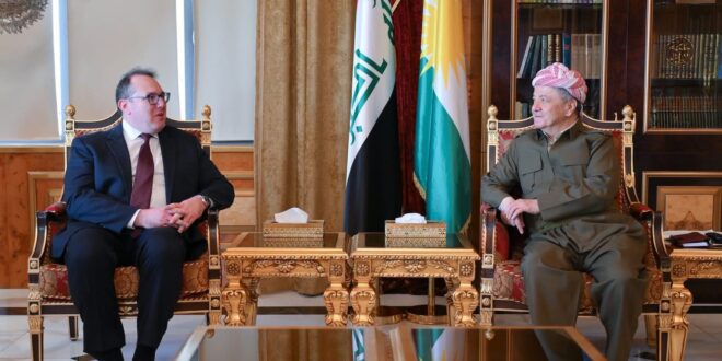استقبل رئيس الحزب الديمقراطي الكردستاني، مسعود بارزاني، في مصيف بيرمام، القائم بأعمال السفارة الأميركية لدى العراق، جوشوا هاريس، حيث بحث الجانبان مستقبل العملية السياسية في البلاد والعلاقات بين بغداد وأربيل.