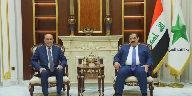 استقبل رئيس تحالف العزم، المهندس مثنّى السامرائي، في مكتبه ببغداد اليوم الخميس، رئيس ائتلاف دولة القانون الأستاذ نوري المالكي، لبحث مستجدات المشهد السياسي في البلاد واستحقاقات المرحلة المقبلة.