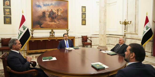 عقدت الرئاسات الأربع في العراق، اليوم الخميس 5 آذار 2026، اجتماعاً في قصر بغداد، بحضور رئيس الجمهورية عبد اللطيف رشيد، ورئيس مجلس الوزراء محمد شياع السوداني، ورئيس مجلس النواب هيبت حلبوسي، ورئيس مجلس القضاء الأعلى فائق زيدان، لبحث التطورات الأمنية والسياسية في المنطقة وانعكاساتها على الأوضاع الداخلية في البلاد.