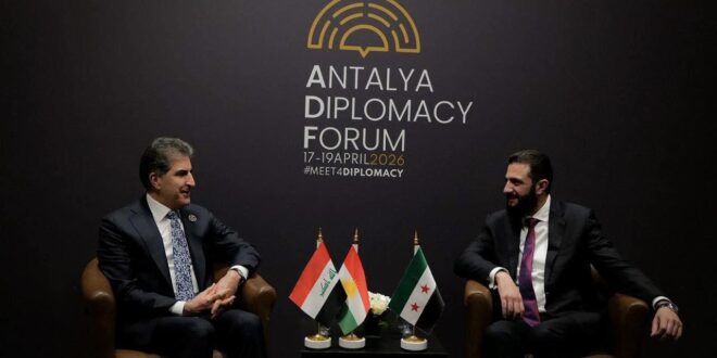 أعلن رئيس إقليم كردستان نيجيرفان بارزاني عن لقائه الرئيس أحمد الشرع في مدينة أنطاليا، حيث جرى بحث سبل تعزيز العلاقات والتنسيق بين الأطراف الإقليمية.