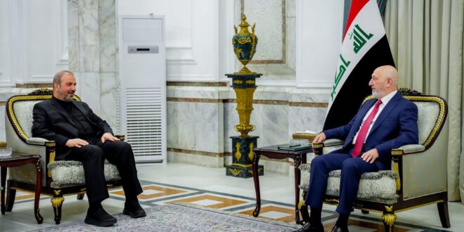 أكد رئيس الجمهورية نزار آميدي أهمية نزع فتيل الأزمات في المنطقة وتجنب الانزلاق نحو الحروب، خلال استقباله السفير الإيراني لدى العراق محمد كاظم آل صادق في قصر بغداد، اليوم الأحد 19 نيسان 2026.