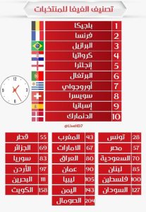 FIFA تنشر الترتيب العالمي للمنتخبات