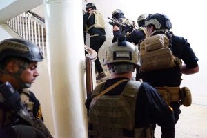 بائتلاف صقور دولة العراق في ساحة الواثق بمنطقة الكرادة فوجدت اوراق مزورة باسم الحشد الشعبي فضلا عن سجلات متاجرة بعقارات الدولة باسم هيئة الحشد ، مضيفا ان المقر الثاني يحمل اسم الانتفاضه الشعبانية في منطقه باب الشرجي بقيادة علي الصكري ينتحل صفه الحشد الشعبي ويحمل رتبة لواء ركن وبحوزته العديد من الباجات المزورة .