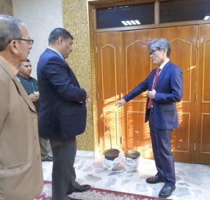 وزار اليوم الأربعاء متنزه الزوراء ملتقياَ بمدير عام دائرة المتنزهات والتشجير ليث الكعبي ومدير التخطيط والمتابعة في الدائرة علاء حميد لتقديم اثنتين منهما لتزرع تحت إشراف كادر متنزه الزوراء مع الأمل بتكثيرها في حال نجاح التجربة.