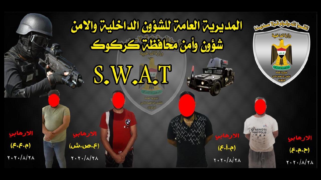 عمر البدري – كركوك ——————————– كشفت مديرية الشؤون الداخلية وأمن محافظة كركوك عن تفكيك شبكة ارهابية مكونة من اربعة اشخاص صادرة بحقهم مذكرات قبض من الجهات القضائية وفق المادة الرابعة ارهاب. يأتي هذا بأاشرف مباشر من قبل الفريق الركن ق خ سعد حربية قائد المقر المتقدم للعميات المشتركة وبأمرة ( العميد الحقوقي سنان جميل البياتي ) مدير الشؤون الداخلية وأمن …