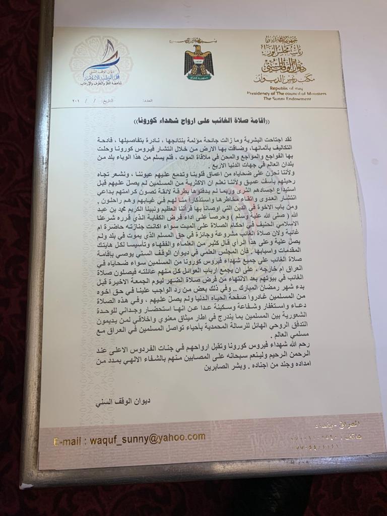 أكمل القراءة »الوقف السني في العراق يقيم صلاة الغائب على ارواح شهداء كورونا