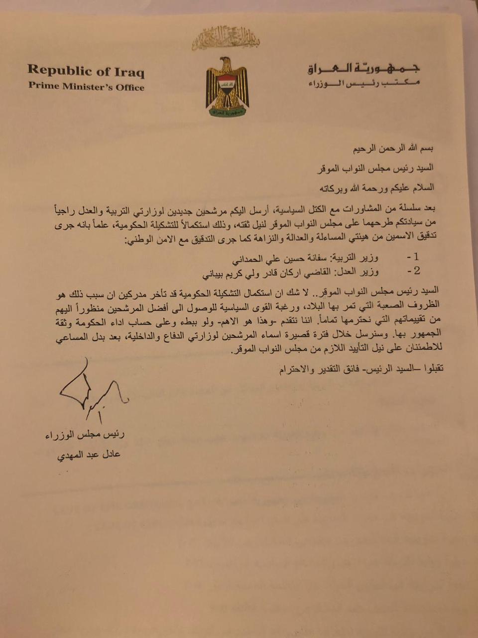 أكمل القراءة »بالوثيقة: عبد المهدي يطرح مرشحين جديدين لوزارتي التربية والعدل