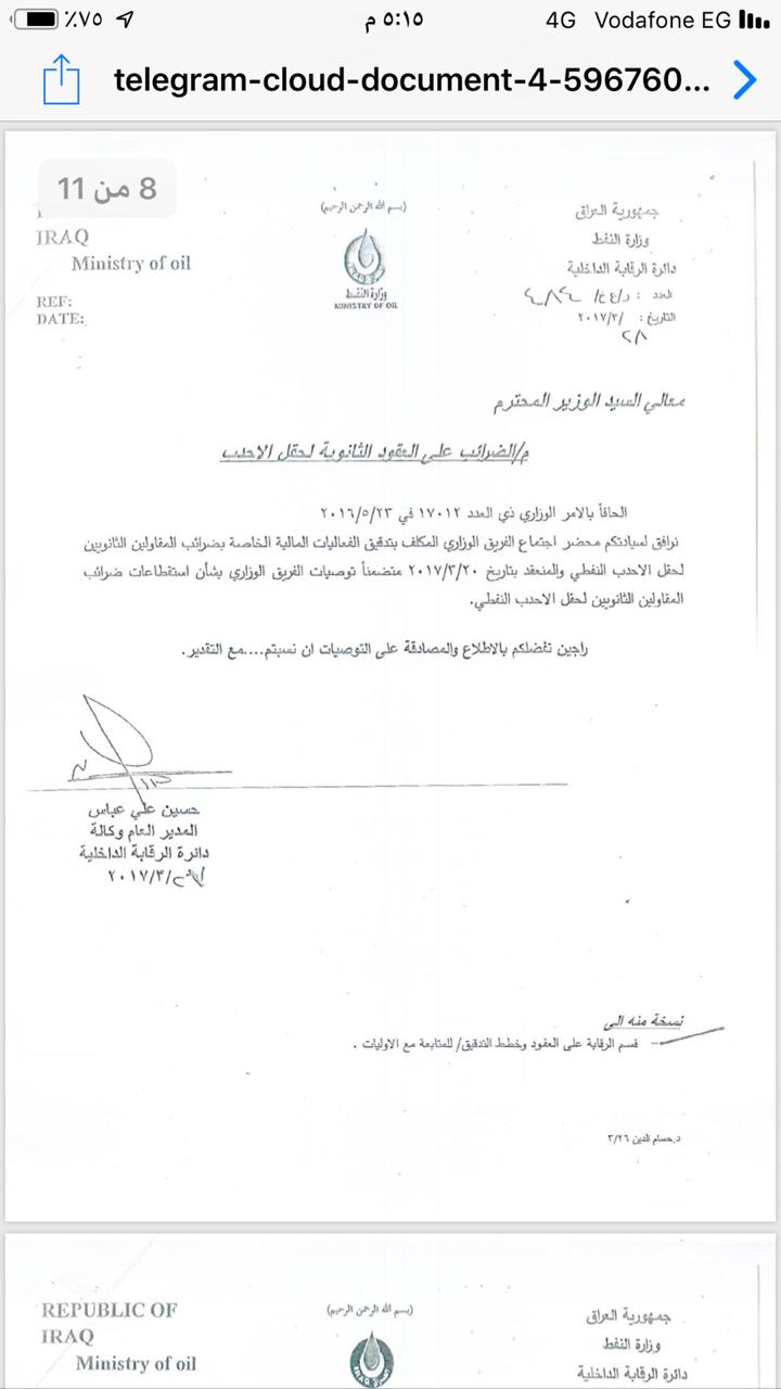 بغداد : خاص هنا العراق ١- عقد تطوير حقل الاحدب يعتبر الضريبة لشركة الواحة ككلف نفطية مستردة بمعنى اخر انها تدفع الضرائب الخاصة بشركة الواحة و تسترد تلك المبالغ الضريبية بالاضافة الى اجور تحميلات ادارية تدفع للشركة مما يعتبر خسارة للعراق . ٢- لم يعفي العقد او اي قانون عراقي الشركات المتعاقدة بشكل ثانوي من الضرائب و لكن شركة …