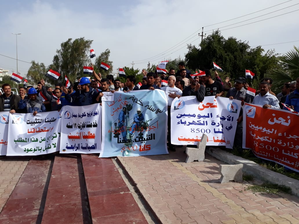 أكمل القراءة »الأجور اليومية في دوائر كهرباء ميسان يتظاهرون للمطالبة بتثبيتهم