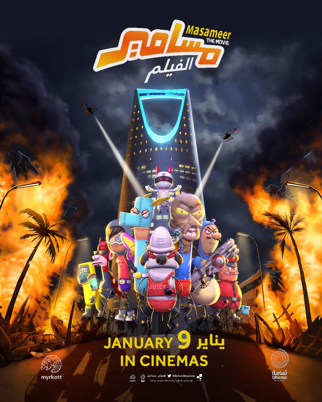 يشهدعددمندورالسينماالخليجيةوالعربيةفيالتاسعمنيناير2020 إطلاقفيلممساميرالكارتونيالسعوديمساميرالذيتمنقلهإلىالسينمابعدمامنأٌقوىمسلسلاتالكرتونعلىاليوتيوب،منذتدشينهعام2011 والفيلممنإخراجمالكنجرومنإنتاج“ميركوت” للمنتجالسعوديعبدالعزيزالمزيني. الفيلمبطولةكلمنعبدالعزيزالشهريومزروعالمزروعوإبراهيمالخيرالله،وشهدالأحمري،ويوسفالدخيل،وهوامتدادلنجاحاتالمسلسلالذيعٌرضعلى“يوتيوب” لستسنواتبالاسمنفسه،وحصدأكثرمن700 مليونمشاهدة. وتتوزعالقصةعلىخطيندراميينالأولمحورهالفتاةالسعوديةدانةالشغوفةبالروبوتوالذكاءالاصطناعيوالتيتشرعفيرحلةلعملالخيرفيالعالمباستخدامالروبوتات،والثانييدورحولوصولثلاثةأصدقاءهم“سعد،وسلتوح،وكلب” إلىالحضيضلينطلقوابعدهافيرحلةخاصةبهملإثباتأنفسهمفيالمجتمعمنخلالتحولهملأبطالخارقينفيمكافحةالجريمةوالفساد. وعننقلالمسلسلمن“اليوتيوب” إلىعالمالسينماقالمنتجهعبدالعزيزالمزيني: “لجأناإلىالموقعوقتهاكمنصةللعرض،ورغمأنتلكالمنصةجيدةمنناحيةالانتشار،إلاأنهاغيرمجدية،وقرارافتتاحصالاتالسينمافيالسعوديةجعلنانتجهلفكرةالإنتاجالسينمائيفيكلأعمالناالمستقبلية. وأوضحالمخرجمالكنجرأنالفيلممتطورمنكلالنواحيعنالمسلسل،مشيراًإلىأنالقصةأكثرتعقيداًوعمقاً،إلىجانبأنالشخصياتأكثرنضجاً،وكذلكالصورةوالموسيقى،مشيراًإلىأنالفيلميواكبالتغيراتالتييشهدهاالمجتمعالسعودي،وقال” معظمشخصياتالمسلسلاتمنالرجال،وبالتاليكانعليناابتكارشخصياتنسائيةواختباركيفيةتوظيفهاللعمل،وبالفعلابتكرناشخصية“دانة” فيالفيلم،وهيمنالشخصياتالرئيسة. سعوديفيصالاتالسينمامطلع2020 يشهدعددمندورالسينماالخليجيةوالعربيةفيالتاسعمنيناير2020 إطلاقفيلممساميرالكارتونيالسعوديمساميرالذيتمنقلهإلىالسينمابعدمامنأٌقوىمسلسلاتالكرتونعلىاليوتيوب،منذتدشينهعام2011 والفيلممنإخراجمالكنجرومنإنتاج“ميركوت” للمنتجالسعوديعبدالعزيزالمزيني. الفيلمبطولةكلمنعبدالعزيزالشهريومزروعالمزروعوإبراهيمالخيرالله،وشهدالأحمري،ويوسفالدخيل،وهوامتدادلنجاحاتالمسلسلالذيعٌرضعلى“يوتيوب” لستسنواتبالاسمنفسه،وحصدأكثرمن700 مليونمشاهدة. وتتوزعالقصةعلىخطيندراميينالأولمحورهالفتاةالسعوديةدانةالشغوفةبالروبوتوالذكاءالاصطناعيوالتيتشرعفيرحلةلعملالخيرفيالعالمباستخدامالروبوتات،والثانييدورحولوصولثلاثةأصدقاءهم“سعد،وسلتوح،وكلب” إلىالحضيضلينطلقوابعدهافيرحلةخاصةبهملإثباتأنفسهمفيالمجتمعمنخلالتحولهملأبطالخارقينفيمكافحةالجريمةوالفساد. وعننقلالمسلسلمن“اليوتيوب” إلىعالمالسينماقالمنتجهعبدالعزيزالمزيني: “لجأناإلىالموقعوقتهاكمنصةللعرض،ورغمأنتلكالمنصةجيدةمنناحيةالانتشار،إلاأنهاغيرمجدية،وقرارافتتاحصالاتالسينمافيالسعوديةجعلنانتجهلفكرةالإنتاجالسينمائيفيكلأعمالناالمستقبلية. وأوضحالمخرجمالكنجرأنالفيلممتطورمنكلالنواحيعنالمسلسل،مشيراًإلىأنالقصةأكثرتعقيداًوعمقاً،إلىجانبأنالشخصياتأكثرنضجاً،وكذلكالصورةوالموسيقى،مشيراًإلىأنالفيلميواكبالتغيراتالتييشهدهاالمجتمعالسعودي،وقال” معظمشخصياتالمسلسلاتمنالرجال،وبالتاليكانعليناابتكارشخصياتنسائيةواختباركيفيةتوظيفهاللعمل،وبالفعلابتكرناشخصية“دانة” فيالفيلم،وهيمنالشخصياتالرئيسة.