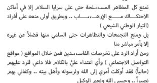 السيد مقتدى الصدر يوجه بمنع المظاهر المسلحة لسرايا السلام
