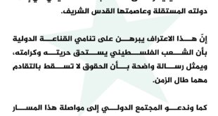 أكمل القراءة »تحالف العزم يرحب بالاعتراف الدولي بدولة فلسطين ويدعو لمواصلة دعم حقوق الشعب الفلسطيني