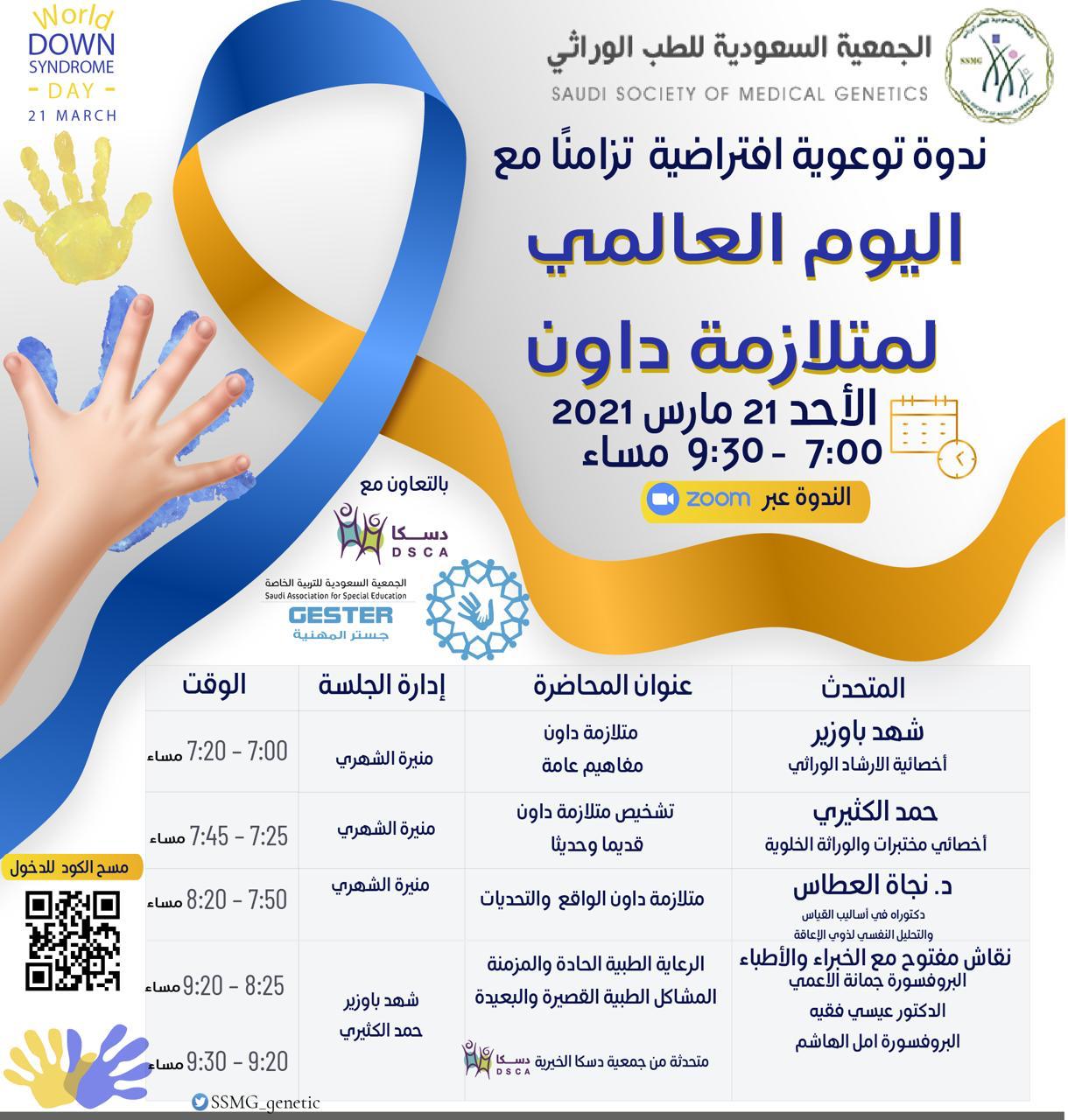 أكمل القراءة »الجمعية السعودية للطب الوراثي تنظم ندوة التوعية بـمتلازمة داون مساء اليوم