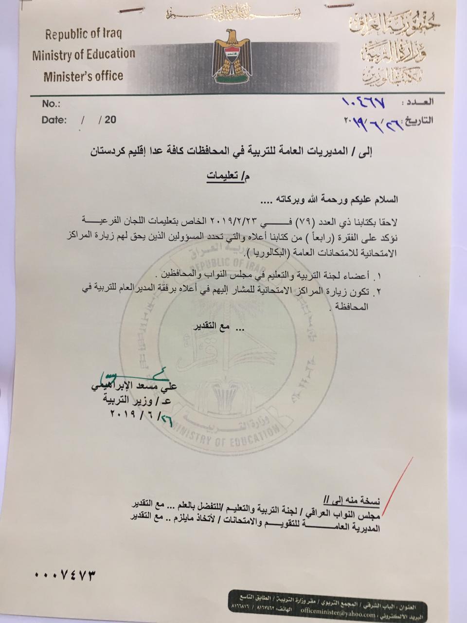 التربية تحدد المسؤولين الذين يسمح لهم بالدخول الى المراكز الامتحانية