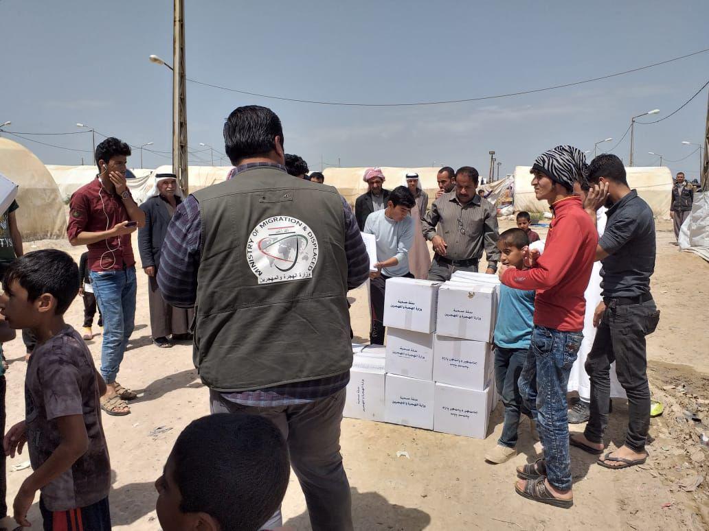 وزعت وزارة الهجرة والمهجرين في مخيمات شرق الموصل مساعدات غذائية وصحية بين العوائل النازحة الذي تعرضت بعض خيامها للاضرار جراء الرياح القوية وموجة الامطار الاخيرة التي عصفت في المنطقة . وذكر مدير عام دائرة شؤون الفروع في الوزارة ستار نوروز أنه “استجابة لتوجيهات وزير الهجرة والمهجرين السيد نوفل بهاء موسى بإغاثة العوائل النازحة في المخيمات تم توزيع (13.916) الف حصة …