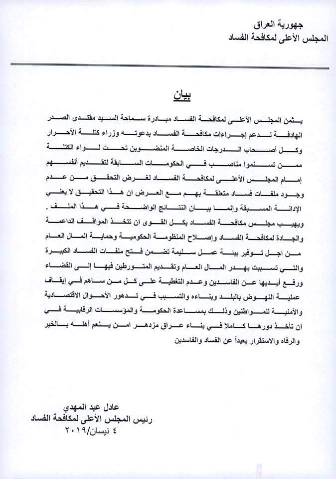 أكمل القراءة »المجلس الأعلى لمكافحة الفساد يرد على “مبادرة الصدر”