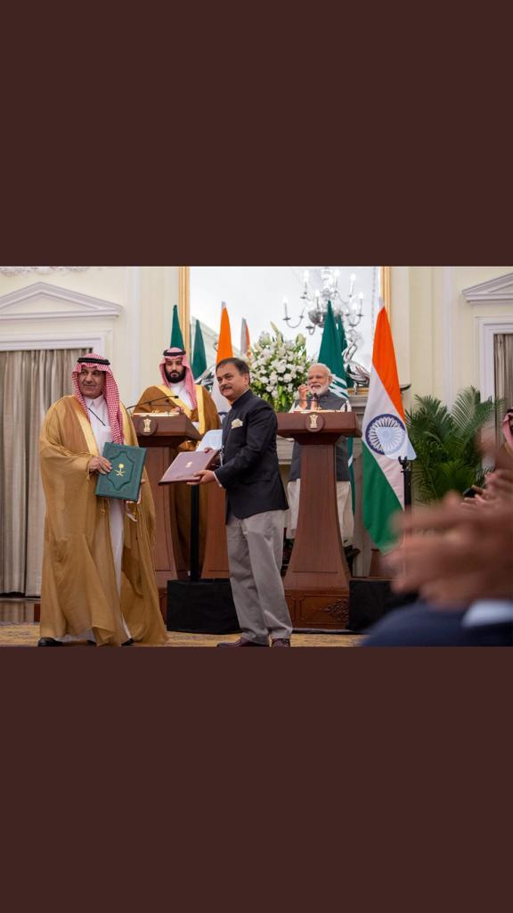 هنا العراق الإخبارية استقبل رئيس وزراء الهند ولي العهد السعودي وعقد الجانبان اجتماعاً ثنائياً كما حضرا التوقيع على 5 اتفاقيات ومذكرات تفاهم ثنائية بين الجانبين والإعلان عن انضمام المملكة للتحالف الدولي للطاقة الشمسية ، الاتفاقيات تضمنت برنامج عمل للتعاون بين الهيئة العامة للاستثمار بالمملكة واستثمار الهند ومذكرة تفاهم في مجال الإسكان ومذكرة تفاهم للتعاون في مجال السياحة بين الهيئة العامة للسياحة …