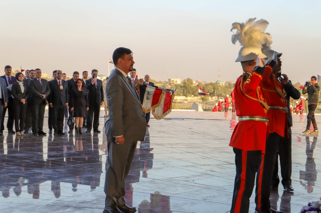 هنا العراق الإخبارية الوفود المشاركة في مؤتمر مكافحة اعلام داعش وفكره تضع اكاليل الزهور على نصب الجندي المجهول ::::::::::::::::::::::::::::::::::::: على هامش انعقاد المؤتمر الدولي الرابع لمكافحة اعلام داعش وفكره ، وضعت الوفود المشاركة اكاليل الزهور على نصب الجندي المجهول وسط العاصمة بغداد ، وقد وضع ممثل دولة قطر الدكتور مطلق القحطاني اكليل من الزهور ممثلا عن الدول العربية المشاركة واستذكر …