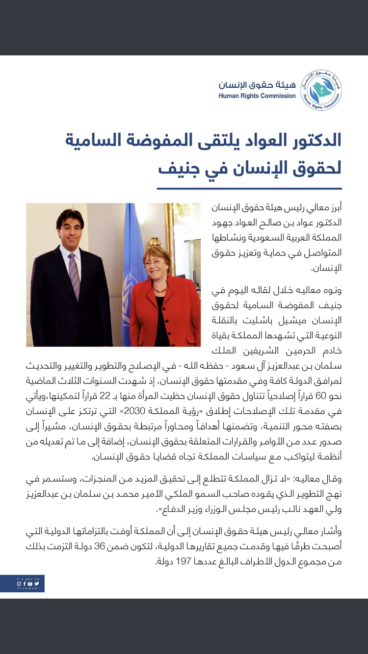 أكمل القراءة »السعودية تؤكد التزامها بتوصيات حقوق الإنسان الدولية