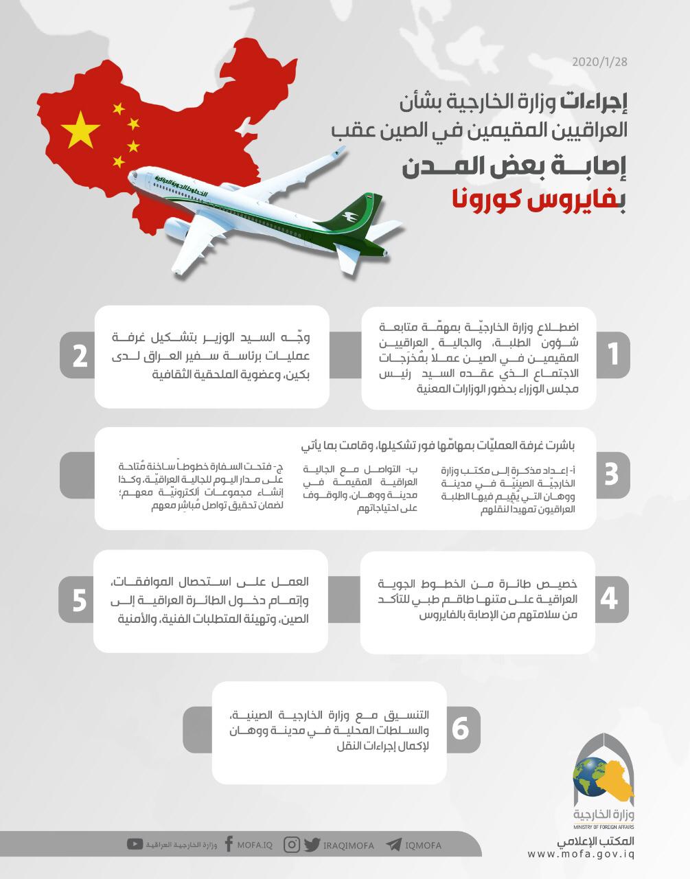 إجراءات وزارة الخارجية بشأن العراقيين المقيمين في الصين عقب إصابة بعض المدن بفايروس كورونا