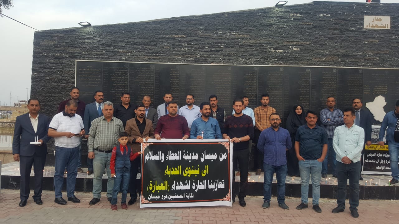 نظم فرع نقابة الصحفيين في ميسان ( السبت ٢٣ اذار ٢٠١٩ ) وقفة حداد ، وسط مدينة العمارة ، على أرواح ضحايا حادث العبارة في الموصل . وقال رئيس الفرع ” سمير السعد ” بان فرعه اقام تلك الوقفة حدادا على أرواح ضحايا الحادث الذي ازهقت بسببه العشرات من المواطنين الابرياء فضلا عن ايقاد الشموع ، مشيرا، الى ان الوقفة …