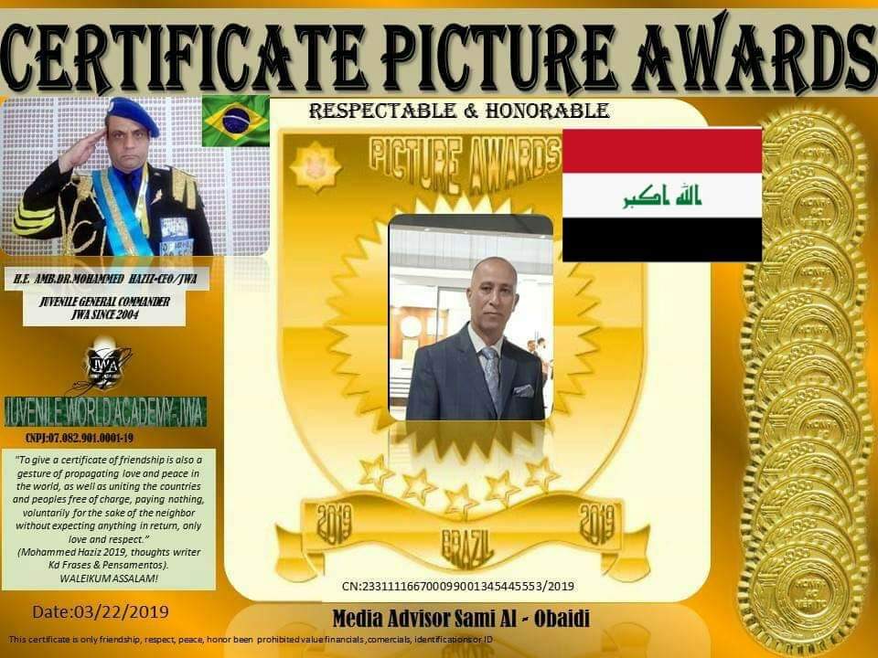 منحت المنظمة الدولية للسلام في دولة البرازيل الميدالية الذهبية للسلام العالمي والعيش المشترك للكاتب والإعلامي سامي العبيدي من جمهورية العراق لمواقفه وبصمته الصحفية في إرساء روح السلام والإنسانية في بلده والمنطقة العربية والعالم أجمع . وقد تقدم الإعلامي سامي العبيدي بالشكر والتقدير العالي لدولة البرازيل والى السفير Amb.mohmaed Haziz والى المستشار الدكتور عامر عبد الرزاق الشيخ عيسى عضو لجنة السلام …